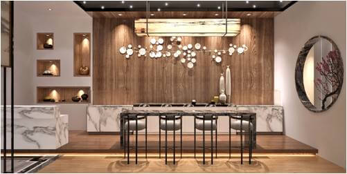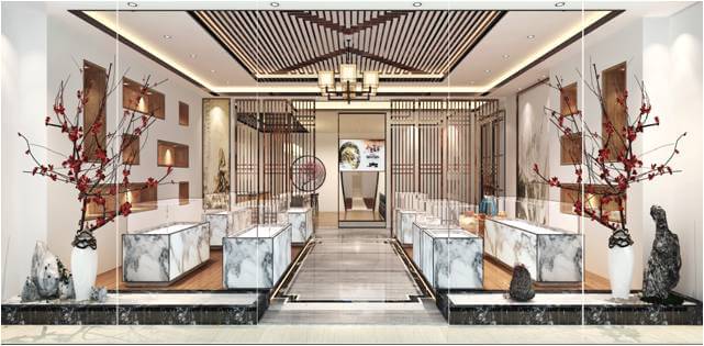 由于該店主要經(jīng)營(yíng)養(yǎng)生滋補(bǔ)品,固風(fēng)格定位為新中式,效果圖一稿通過(guò),同學(xué)們加班加點(diǎn)的付出是值得的。