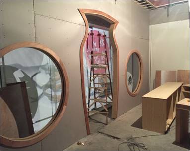 3、抬高的空間有優(yōu)越感,下沉的空間具有私密性安全感,固把原來(lái)拆墻的建筑垃圾用來(lái)做售賣區(qū)的抬高,增加空間的層次感。又方便水吧區(qū)下水管道的坡度擺放。