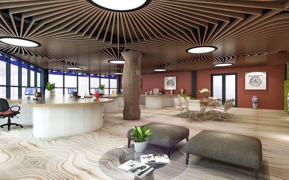 一般適用于中小企業(yè)。造型流暢,運用線條感打造空間流暢度。善于用植物裝飾每個角落。通過光影的應(yīng)用效果,可以在一個狹小的空間里創(chuàng)造變化,找到線條變化與光影之間對靈魂的影響。