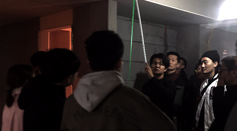 2019.12.12下午兩點多李老師帶領學生前往正在施工的的工地量房,量房雖然很簡單但是想要量好確實很難,李老師先和學生講解量房的基本注意事項以及量房技巧,親手示范量房中的難點,讓學生更加的理解為什么要這樣量。